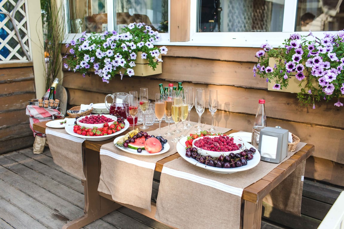 Nothing says summer like BBQ, which is why we recommend shopping for fresh ingredients that taste delicious when grilled to perfection. This can include a variety of meat and seasonal vegetables. To top it off, make sure to grab some sweet and spicy glazes to capture that added flavor. If your event doesn’t take place at mealtime, popsicles are the perfect light snack to offer once everyone arrives. Aside from being easy to make yourself, they’re great for cooling off when temperatures are high. Lastly, it wouldn’t be summer without the warm glow of a nighttime fire. Whether you’re permitted to burn in an open fit or you opt for a fire table, smores should be a top priority for your summer menu!