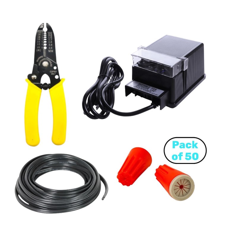 Accessory Kit 1 with 100 ft. #16 Wire 150W Transformer 50 Wire Nuts and a Wire Stripper